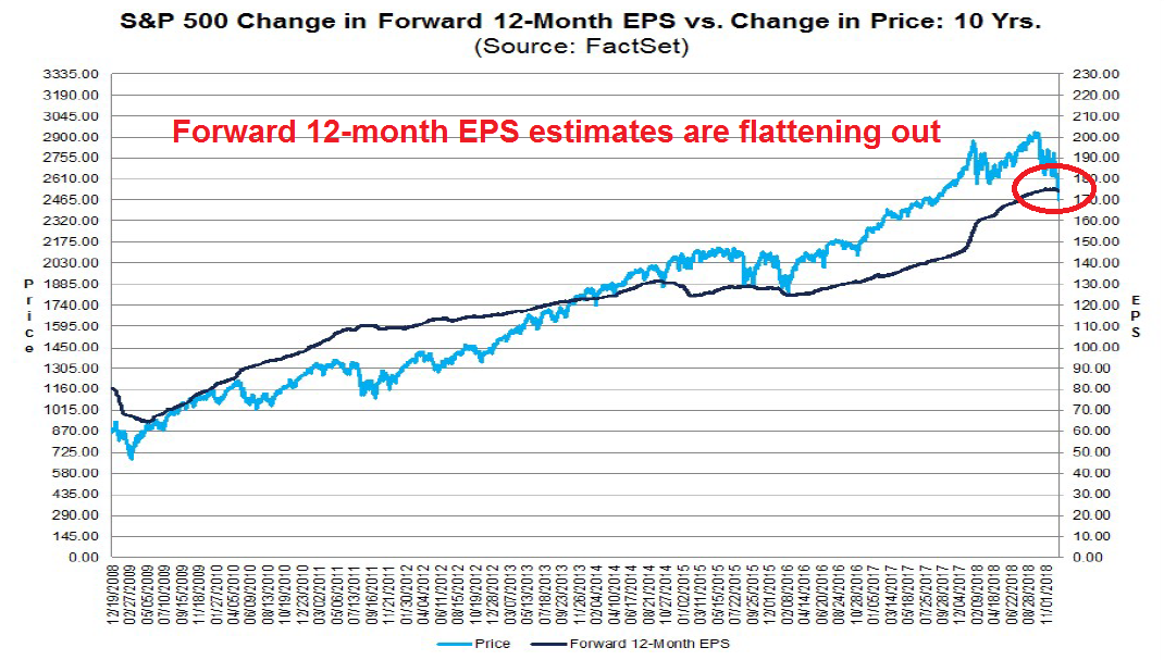In addition, the latest update from FactSet shows forward EPS estimate revisions have been flattening, which is another indication of diminished growth expectations from Wall Street.