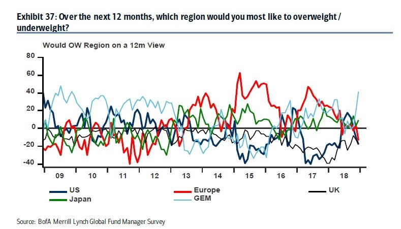 What are they doing with their equity allocation? Last week, I highlighted analysis from Kevin Muir of The Macro Tourist, who believed that managers were in a crowded long in USD assets, including equities. As US growth slows in early 2019, managers will begin to normalize their overweight position in US equities. That is precisely what is the Fund Manager Survey is telling us. Instead, managers are re-allocating their weights to the high beta EM equities, which is consistent with the view that the world would avoid a 2019 recession.