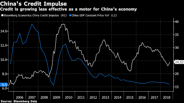 Another round of stimulus is unlikely to have similar effects as past packages. If the stimulus is purely fiscal in nature, investors are likely to be disappointed with the magnitude of the effect. If the stimulus is credit driven, John Authers pointed out that credit impulses are growing less and less effective as a way to boost growth.