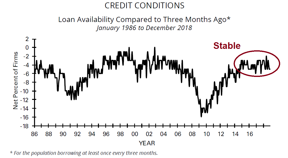 What about financial stability? The NFIB survey of credit conditions are stable.