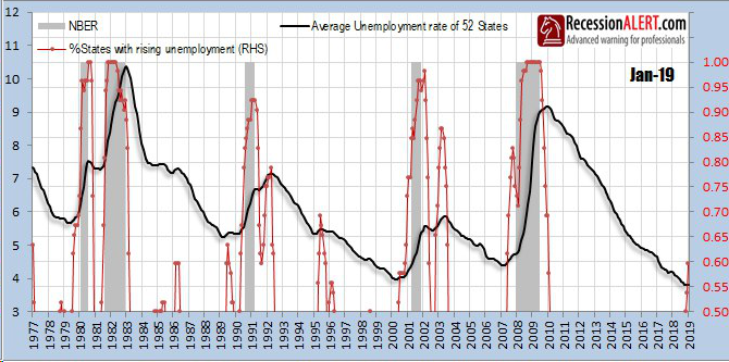 The latest Jobs Report saw the headline unemployment rate decline from 4.0% in January to 3.8% in February, which is constructive, but the internals of the report don`t appear as rosy. RecessionALERT pointed out that 60% of states have reported an increase in unemployment rate.