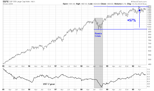 While this is not my base case scenario, there is a decent chance that the stock market may melt-up in light of the Fed’s extraordinarily dovish statement last week. One parallel to the market hiccup of late 2018 would be 1998, when the Fed stepped in to rescue the financial system in the wake of the Russia Crisis.