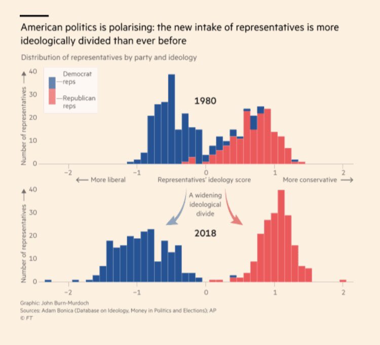 What if a Democrat wins the White House in 2020? This chart of how American politics has been polarized serves as a useful guide to future policy. If a Democrat were to win control of the White House, policy would take a dramatic lurch leftward. In the current political climate, that means the likely ascendancy of Modern Monetary Theory (MMT) as a policy framework.