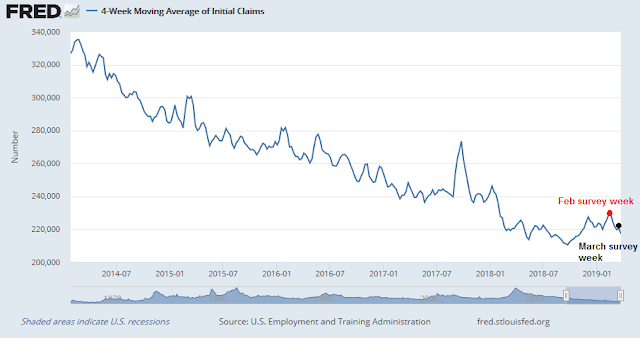 One clue comes from the weekly initial jobless claims data, which is reported on a timely basis. As the chart below shows, the week of the February Jobs Report survey coincided with an unusually strong initial claims print, which may have contributed to the shocking miss in the February NFP report of 20K jobs. Initial claims for the March survey week weakened to a level consistent with January’s. In light of the strong January NFP print of 304K jobs, which was later revised to 311K, this suggests that an in line or beat result for March headline NFP estimate of 175K.