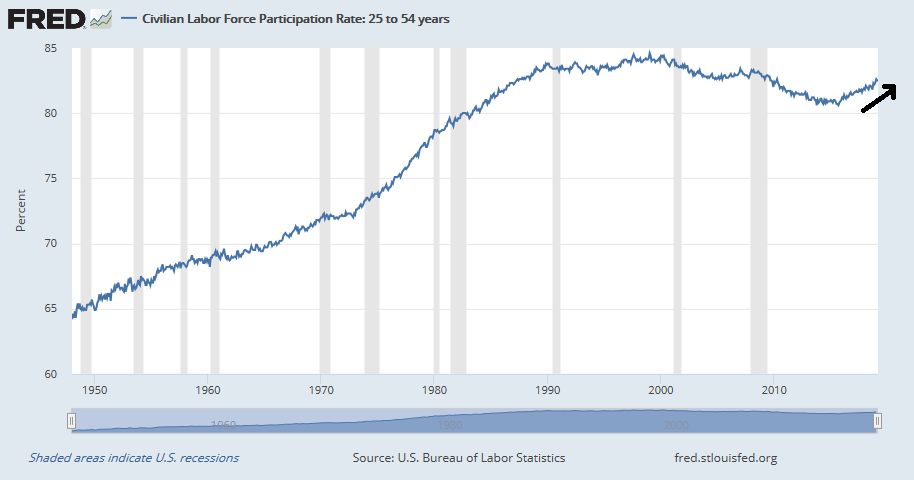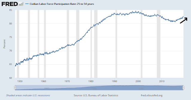 The prime age labor force participation rate has been improving steadily.