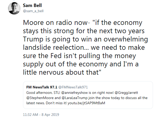 After the BLS reported a strong than expected March Jobs Report last Friday, Donald Trump repeated his assertion that the Fed should shift to an easier monetary policy (via CNBC):