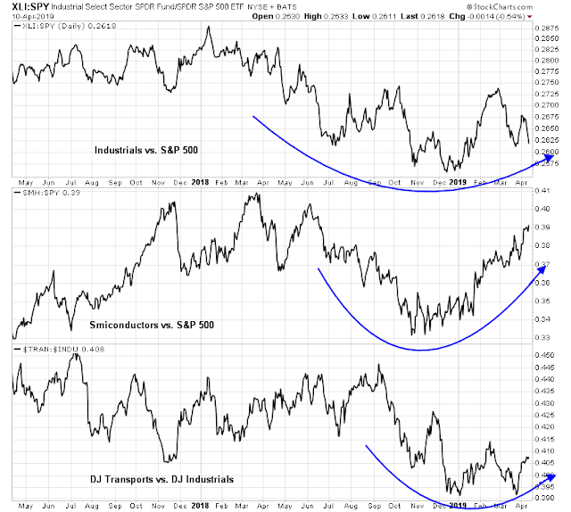 The turnaround from excessive caution about an economic slowdown is showing up in rising price momentum. Brett Steenbarger at TraderFeed wrote on Monday: