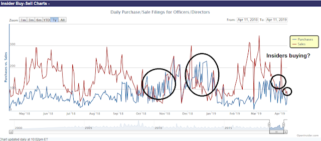 Another possible bullish signal comes from insider activity. While this signal is not as strong as it has been in the past, the latest report from Open Insider shows that insider selling has virtually dried up while the level of buys remain about the same. Recent definitive buy signals occurred during period of market weakness, and the latest mini cluster of insider buying in the face of rising stock prices is constructive for the bull case.