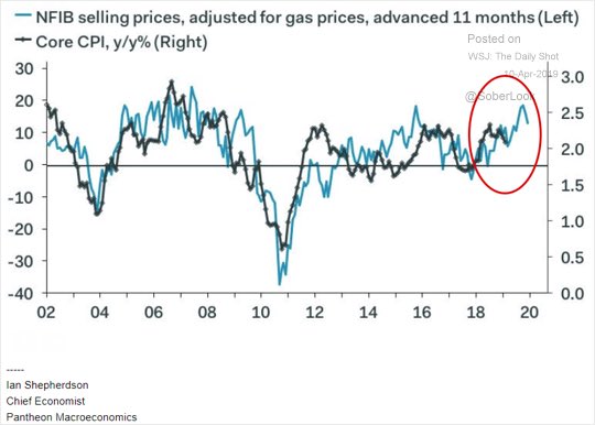 NFIB data can be very noisy and contradictory. Other analysis reveals that NFIB selling prices lead core CPI by about 11 months. How soft can the economy be if leading indicators of inflation are accelerating?