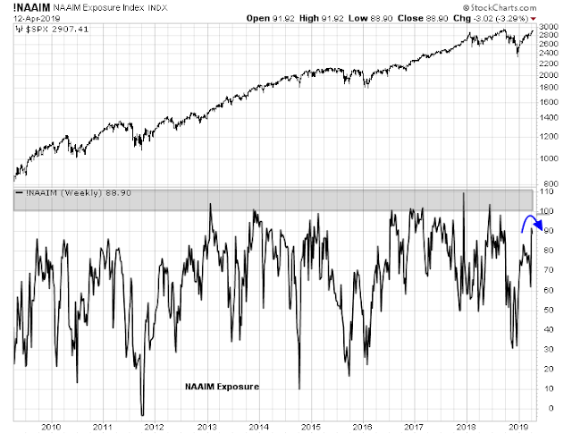 The NAAIM Exposure Index, which measures the opinions of RIAs, saw a minor retreat in bullishness last week. While readings are a little elevated, they are not at a bullish extreme, which would be contrarian bearish.