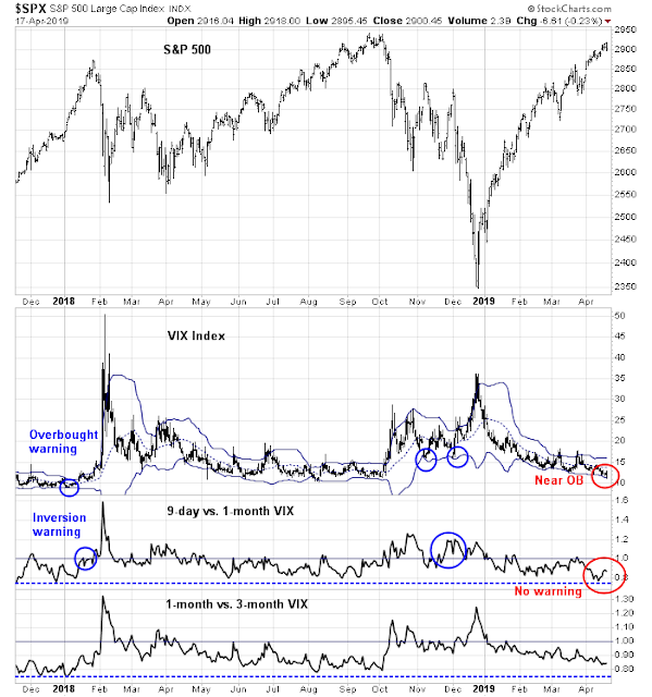 In short, I am monitoring volatility indicators for signs of possible market weakness. Those indicators are not flashing any warning signs yet.