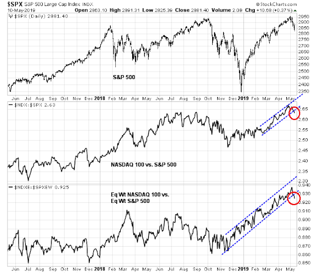 If the Street revises estimates downwards, we should see the effects in the next 2-4 weeks. That time frame also coincides with the window for a market bounce. If the stock market is rallying as estimates are being cut, then that is a signal to turn cautious. The 2-4 week window is also a negotiation window. The latest round of tariffs are applied to goods exported from China starting on May 10, not landing on US soil on that date. Within that period, all imports from China will be subject to the new tariffs as it takes that long for shiploads of goods to arrive. The US has made it clear that if there is no deal by late June, the new tariffs of 25% will be imposed on the remainder of goods coming from China.