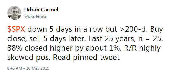 A similar, but less rigorous, historical study by Urban Carmel based on Thursday’s closing price came to a similar conclusion. The market is oversold, and due for a bounce.