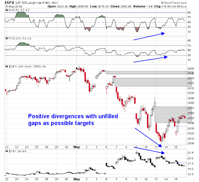 Mid-week market update: There are numerous signs that the US equity market is making a short-term tradable bottom. Firstly, the market is washed out and oversold. While oversold markets can become more oversold, we saw some bullish triggers in the form of positive divergences on the hourly SPX chart.