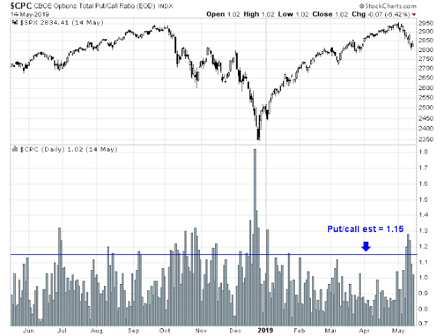 Rob Hanna’s analysis suggests that his CBI buy signals have a positive risk/reward of at least three weeks. In the very short-term, the market is climbing the proverbial wall of worry. Despite today’s advance, the CBOE put/call ratio end-of-day estimate stands at 1.15, indicating some degree of residual fear and skepticism about the rally.