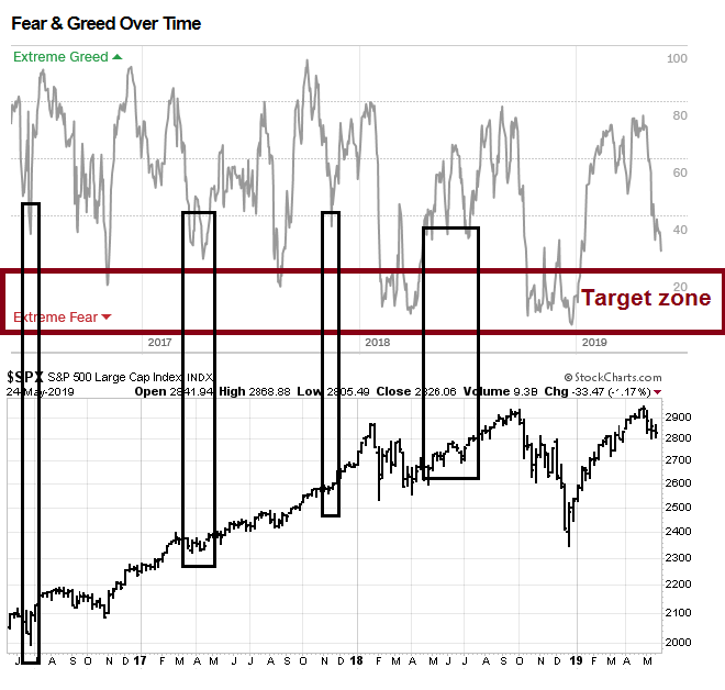 The CNN Business Fear and Greed Index is 27, which is low but not at the sub-20 target zone seen at bottoms. However, there have been other instances when the market has seen minimal downside risk with the index in the 20-40 range.