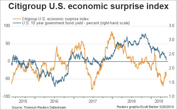 On the other hand, the Citigroup Economic Surprise Index, which measures whether top-down economic figures are beating or missing expectations, is rising, and that will put upward pressure on bond yields.