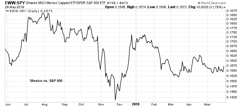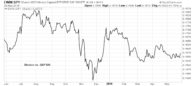 Another possible diversifying element for US equity portfolios might be Mexican stocks. While the trade dispute with China is driving production out of China, the production is not returning to the US, but into Southeast Asian countries, and Mexico. The likely ratification of NAFTA 2.0 by all three countries could also provide a boost to Mexican stocks.