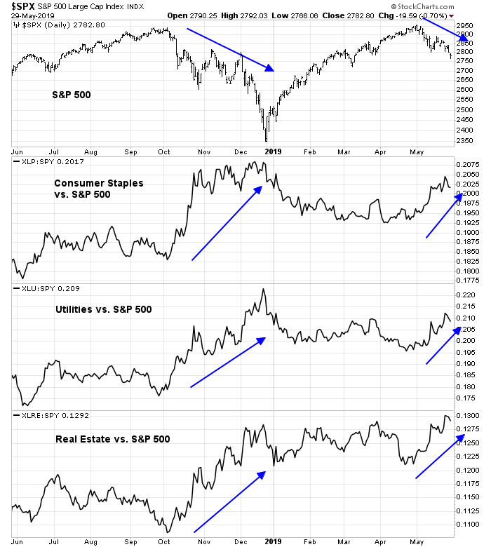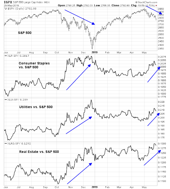 Mid-week market update: The headlines look dire, and so does the market action. Relative performance analysis shows that defensive sectors have become the leadership, but as the October to December selloff shows, they are coincidental indicators and offer no predictive power as to future market direction.