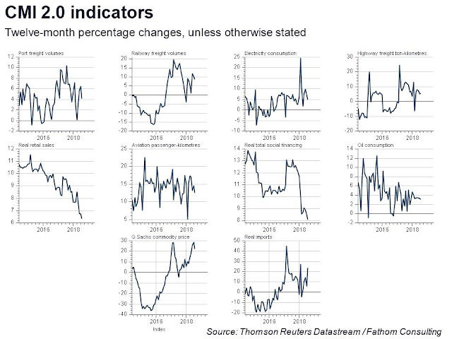 As well, of the 10 Fathom Consulting indicators of China’s economy, nine are falling and only one, real imports, is pointing upwards. Even the rise in imports may be an anomaly, as they may be front-loaded to escape rising tariff rates.