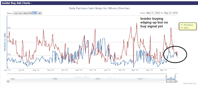 Insider buying is edging up, but readings are neither high enough nor long enough to flash a buy signal.