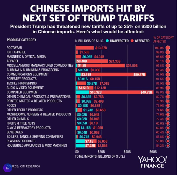 The next round of 25% tariffs on $300 billion of Chinese goods threatened by Trump is going to hit American consumers in the pocketbook. They will also hurt US manufacturers, as many of the tariffs will be on intermediate goods, or inputs, into American made products. This will either raise prices, squeeze margins, or both, and it cannot be a positive step to encourage American manufacturing.