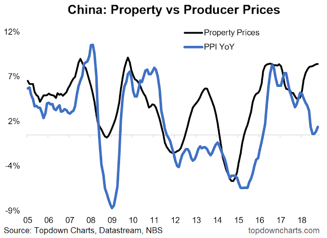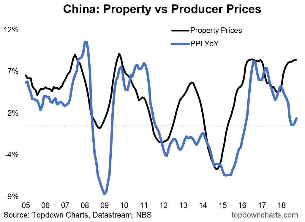 Callum Thomas of Topdown Charts revealed a divergence between China’s property and producer prices. I attribute the strength in property prices to the effects of the stimulus program because real estate is so leveraged and cyclically sensitive. In addition, the nascent uptick in producer prices may also be a hint of a cyclical upturn.
