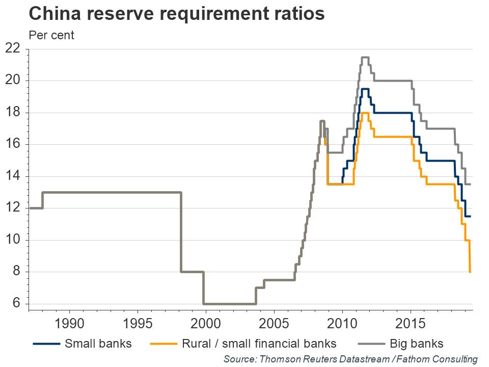 On the surface, China has plenty of stimulus ammunition left. Reserve requirement ratios (RRR) is still relatively high, and there is more room for them to fall.