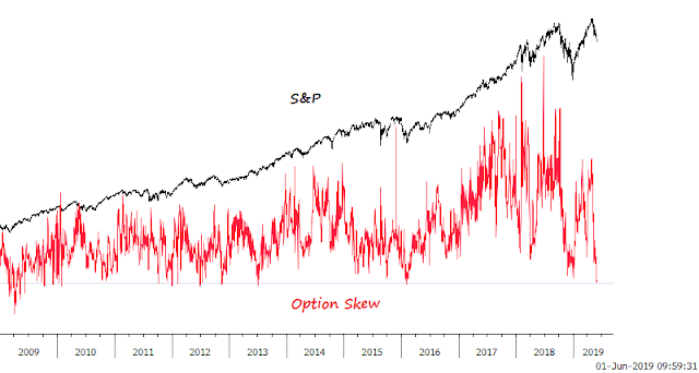 Another example of rising fear can be seen in the S&P 500 option skew. Macro Charts pointed out that this indicator fell to levels just above the readings seen at the 2009 market bottom.