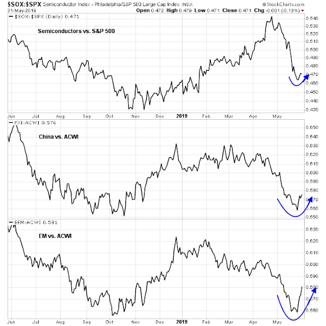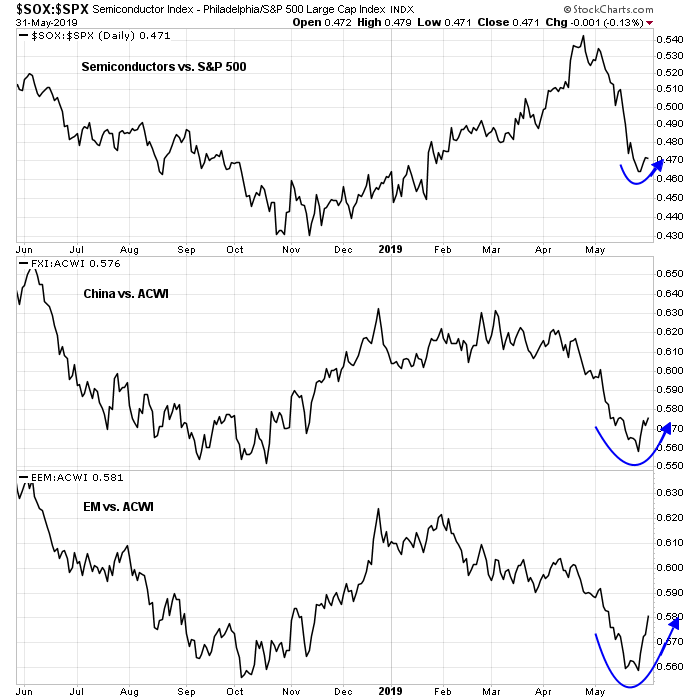 We are also seeing signs of seller exhaustion from market internals. Look at what has been outperforming in the last few days: semiconductors, China, and emerging market equities. These are all parts of the market that are sources of the recent market anxiety. Why are they showing a turnaround in relative strength?