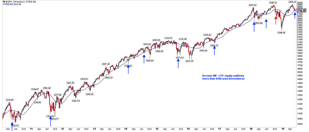Urban Carmel observed that there was a massive $22 billion outflow from equity mutual funds and ETFs last week. Such events have resolved themselves with a short-term rally of 4% or more, even if the market rolled over afterwards.