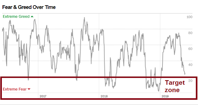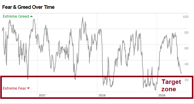 The Fear and Greed Index closed at 24 on Friday, which is above the sub-20 target zone found at past intermediate term bottoms, indicating the market may have some unfinished business to the downside.