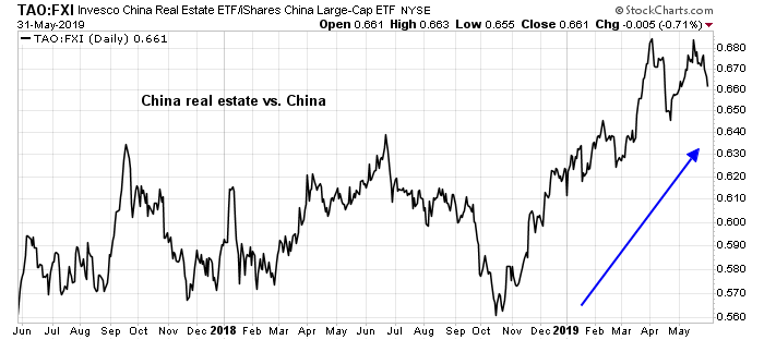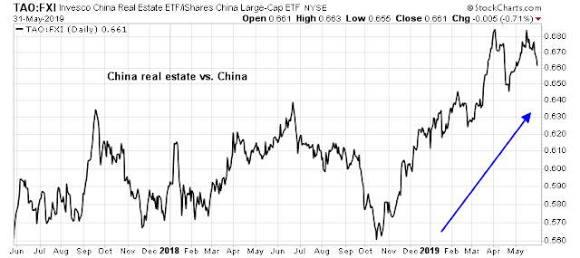 While we have no way of knowing the decisions that affect stimulus policy, we can monitor a real-time indicator of Chinese stimulus by watching the relative performance of Chinese property developers. At a minimum, expect stimulus to continue until the October 70th anniversary celebration of Mao’s founding of the PRC.