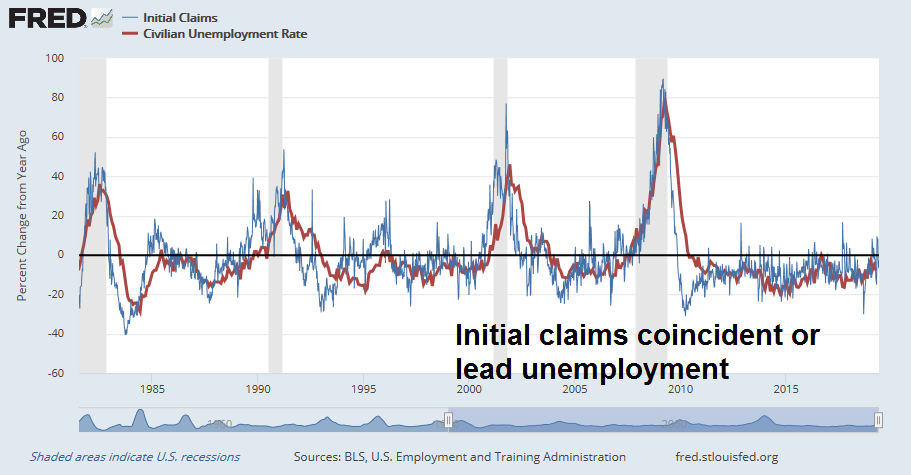 History also shows that changes in initial claims have either been coincidental or led changes in the unemployment rate.