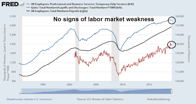 My own heuristics, based on temp job growth and the quits to layoffs ratio that have historically led NFP, suggest few signs of labor market weakness. However, I expect to see some signs of downside surprise in the May report.