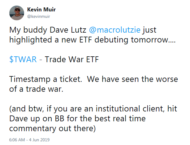 I believe that the presence of trade related risks suggests that the market will remain choppy until the uncertainty is resolved. Arguably, we may be seeing peak tariff anxiety. Kevin Muir pointed out that a new ETF with a trade war theme has been listed, which may mark the high water mark of protectionism fears.