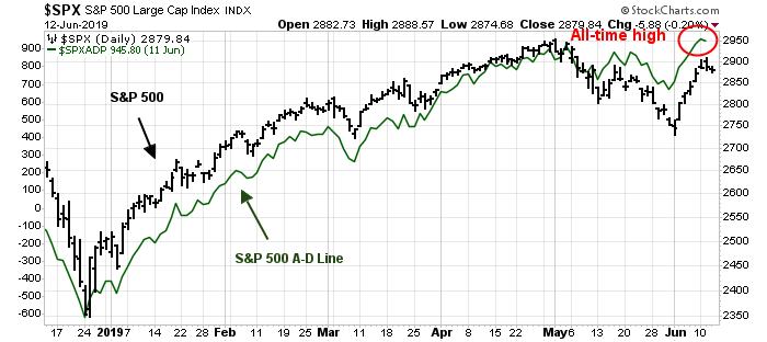 To analysts who watch charts to predict moves in securities, the broad elevation among stocks is a sign of internal strength that bodes well for the market. Yet Jeff deGraaf, co-founder of RenMac, found a distinctive contrast from 2018 that may cast a shadow on the indicator’s bullishness.