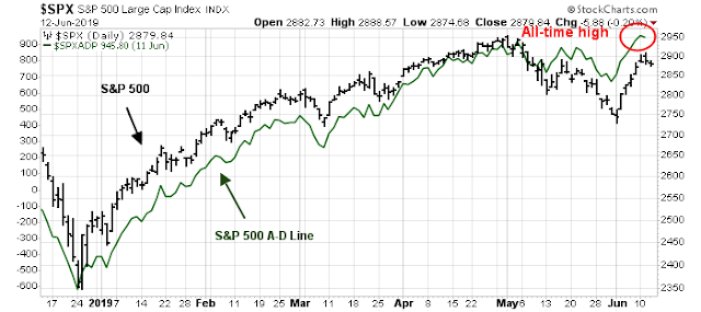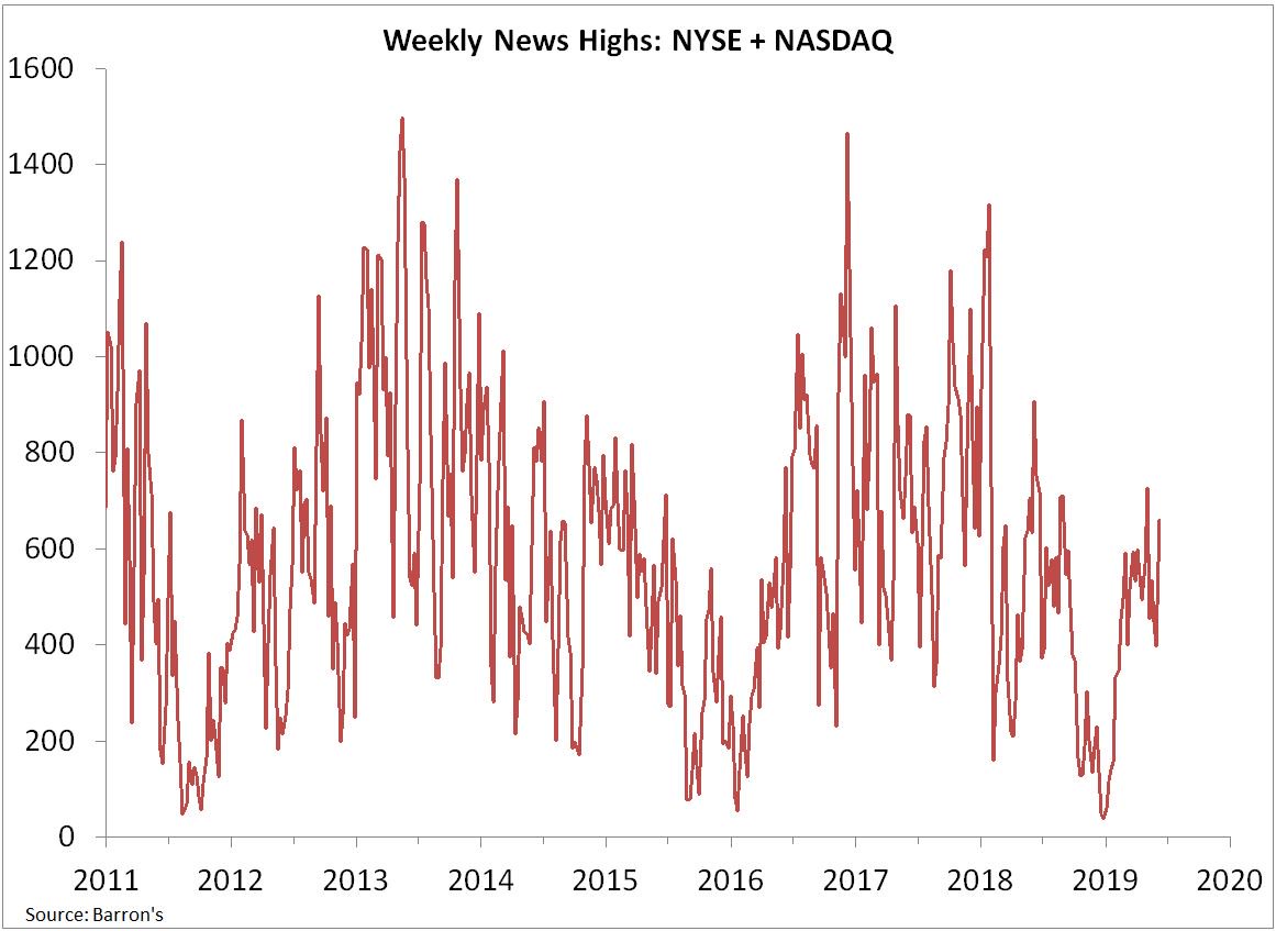 Willie Delwiche also pointed out that if you combine NYSE and NASDAQ 52-week highs, market breadth looks far less impressive.