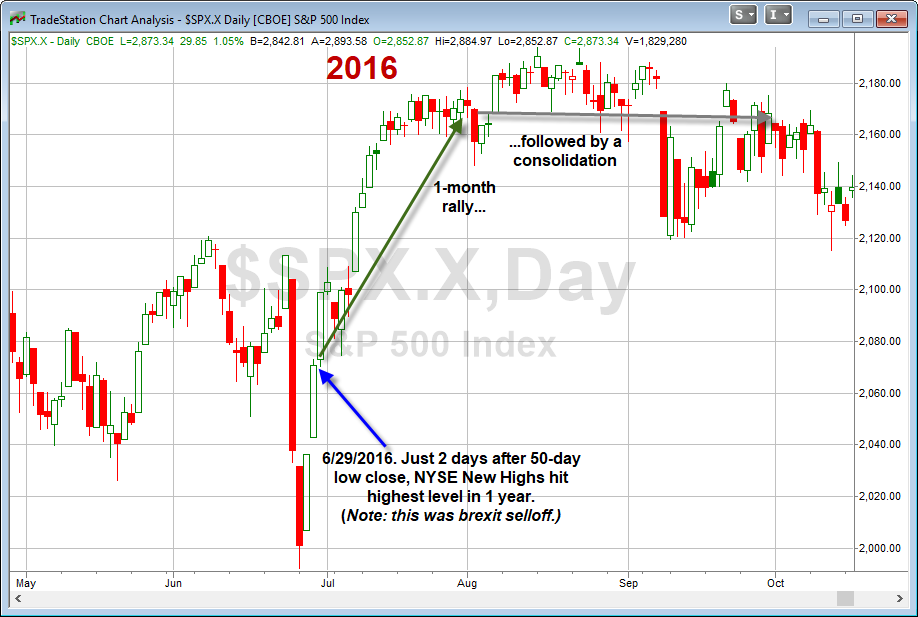 The third occurrence was the Brexit sell-off and recovery. The market rose for a month, but consolidated and went sideways afterwards.