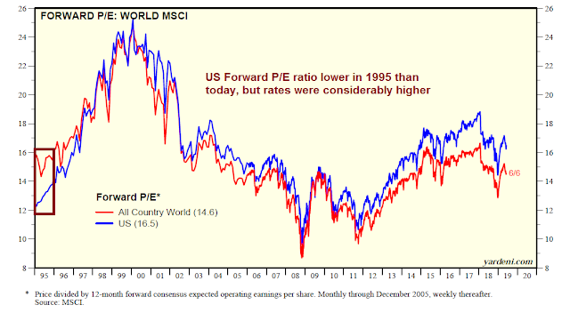 Gavyn Davies, writing in the Financial Times, agrees with the 1995 analogy. In particular, Davies pointed to the CNBC interview with Fed vice chair Richard Clarida as evidence for a precautionary rate cut: