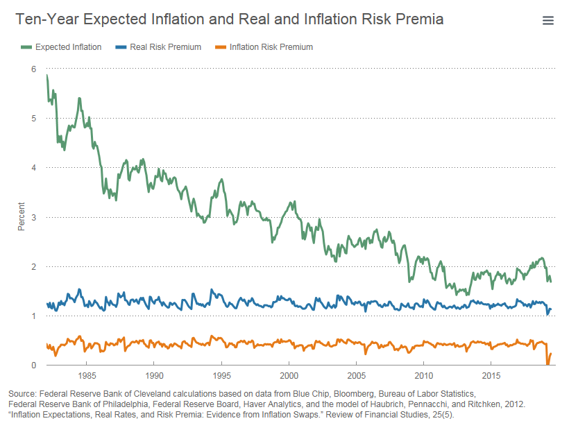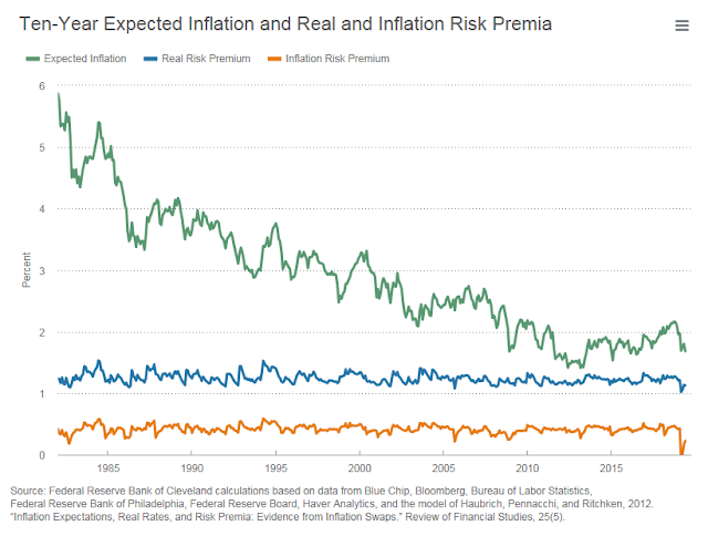 In addition, rate cuts can further be justified in the face of tame inflationary expectations (via the Cleveland Fed).