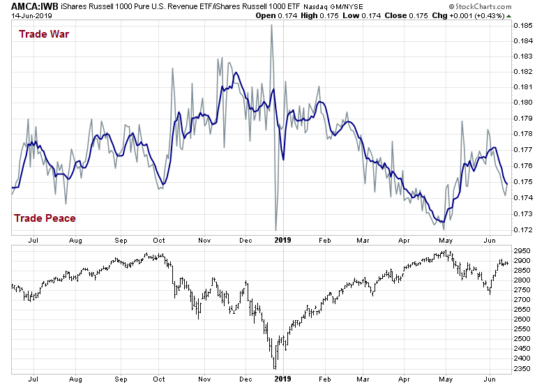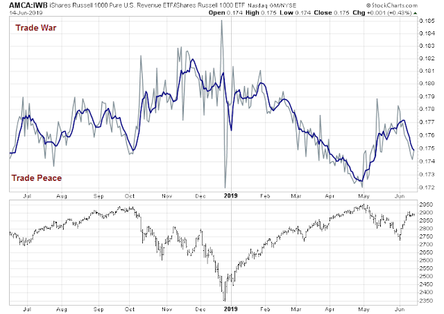 My own naive trade war factor, which is measured by the relative performance of Russell 1000 companies with only domestic exposure, has been tilting towards a “trade peace” in the last week. While Trump and Xi are expected to meet on the sidelines at the Osaka G20 at the end of June, there has been no official confirmation from the Chinese side that a meeting has been scheduled. While this may be just an example of negotiating brinksmanship, benign market expectations is setting up the possibility of disappointment.