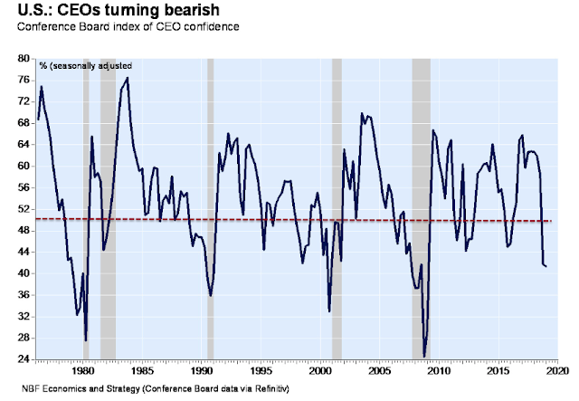 David Kostin at Goldman Sachs estimated the first-order effects of the 25% tariff on $300 billion of Chinese imports to be up to 6% of 2019 earnings, but he was silent on the second-order effects such as the loss of business and consumer confidence, which are very hard to model.
