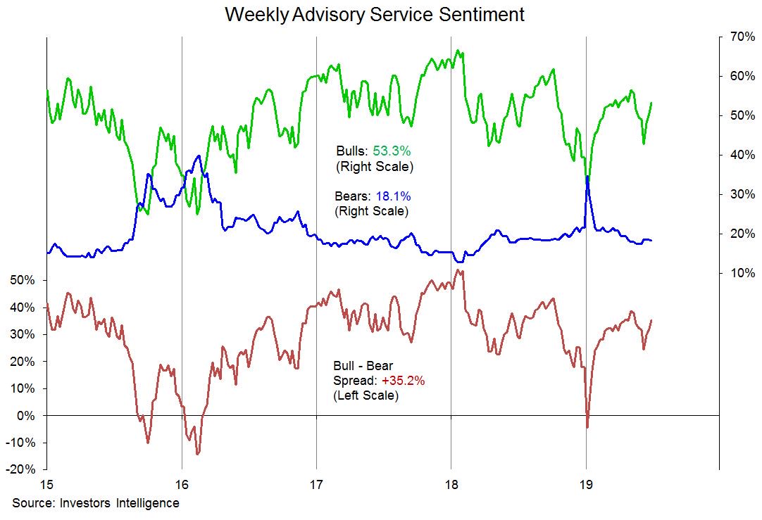 Sentiment surveys, such as II sentiment, has normalized as % Bulls are recovering to pre-pullback levels.