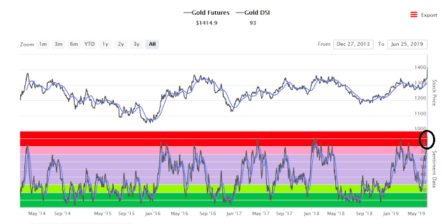 In the short term, gold is wildly overbought. The DSI stands at 93, which is a level that has not been seen since the 2011 peak. Now is not the time to be buying.
