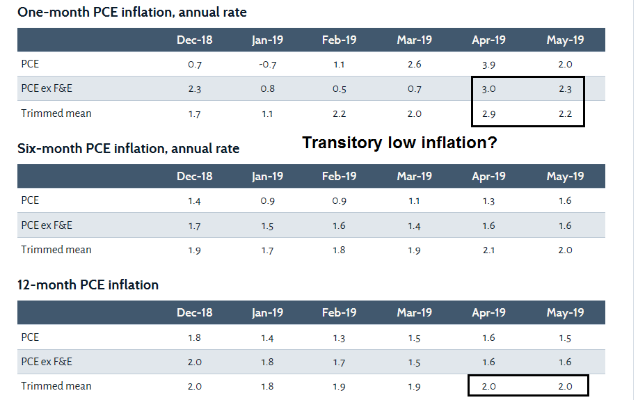 However you measure it, the monthly annualized core PCE and trimmed mean PCE are well above the Fed’s target of 2%. While the year/year rate of core PCE has been stable at 1.6%, trimmed mean PCE has been at 2.0% for the last two months. These readings do not support the case for monetary easing based on low inflation.