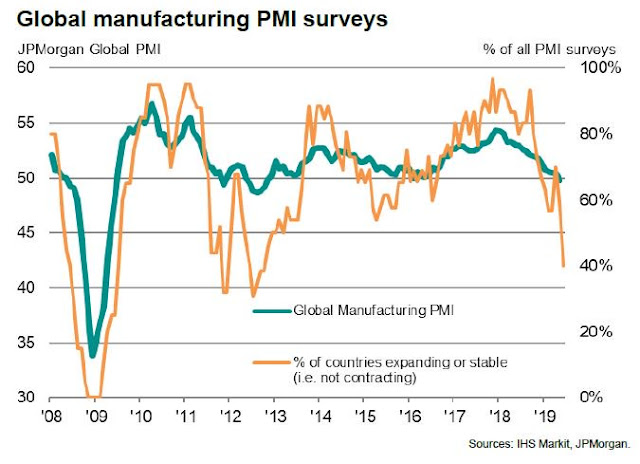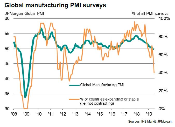 In addition, global PMIs have been falling all around the world, which is indicative of a synchronized global slowdown.