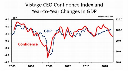 CEO confidence has also been falling rapidly. While it is relatively easily to measure the first-order effects of tariffs, estimating the second-order effects of a loss of confidence is less precise. However, the historical record does show that current readings point to a possible air pocket in growth ahead.