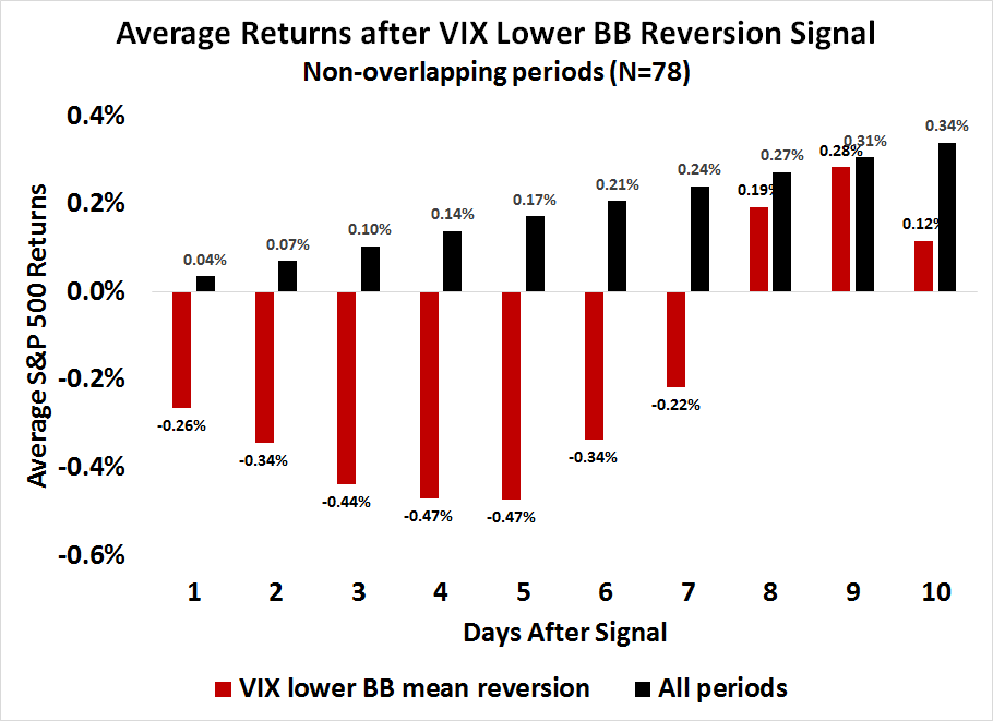 Re the chart that displays average SPX returns following reversion of VIX above the lower Bollinger Band-