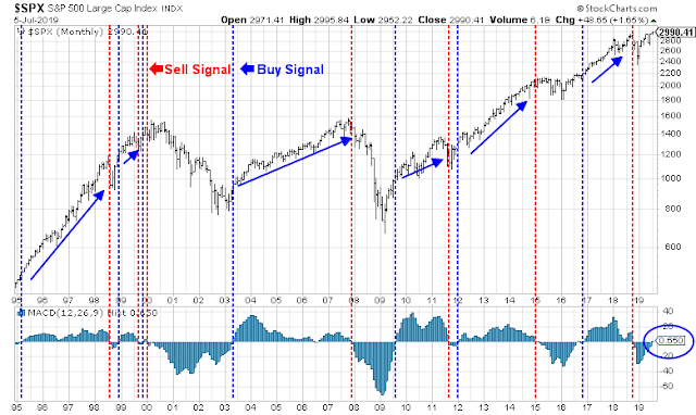 We maintain several market timing models, each with differing time horizons. The “Ultimate Market Timing Model” is a long-term market timing model based on the research outlined in our post, Building the ultimate market timing model. This model tends to generate only a handful of signals each decade.